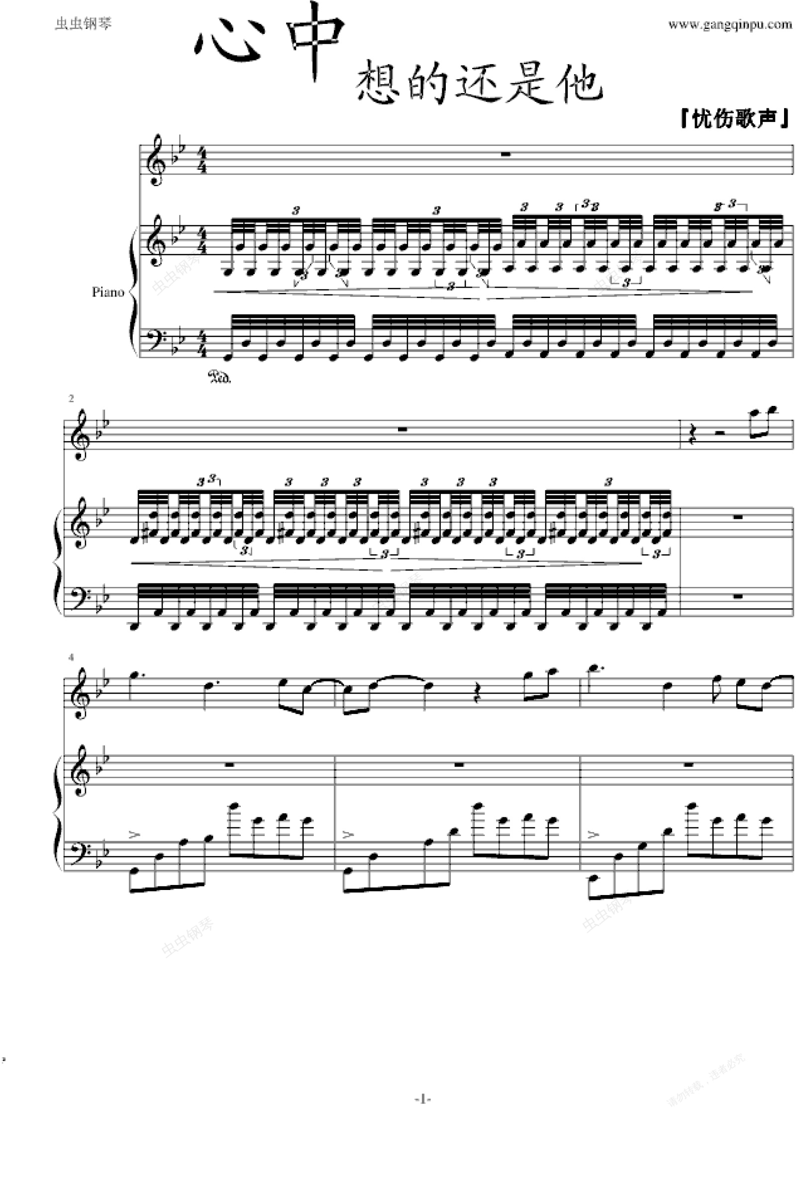 钢琴谱:心中想的还是他——『忧伤歌声』