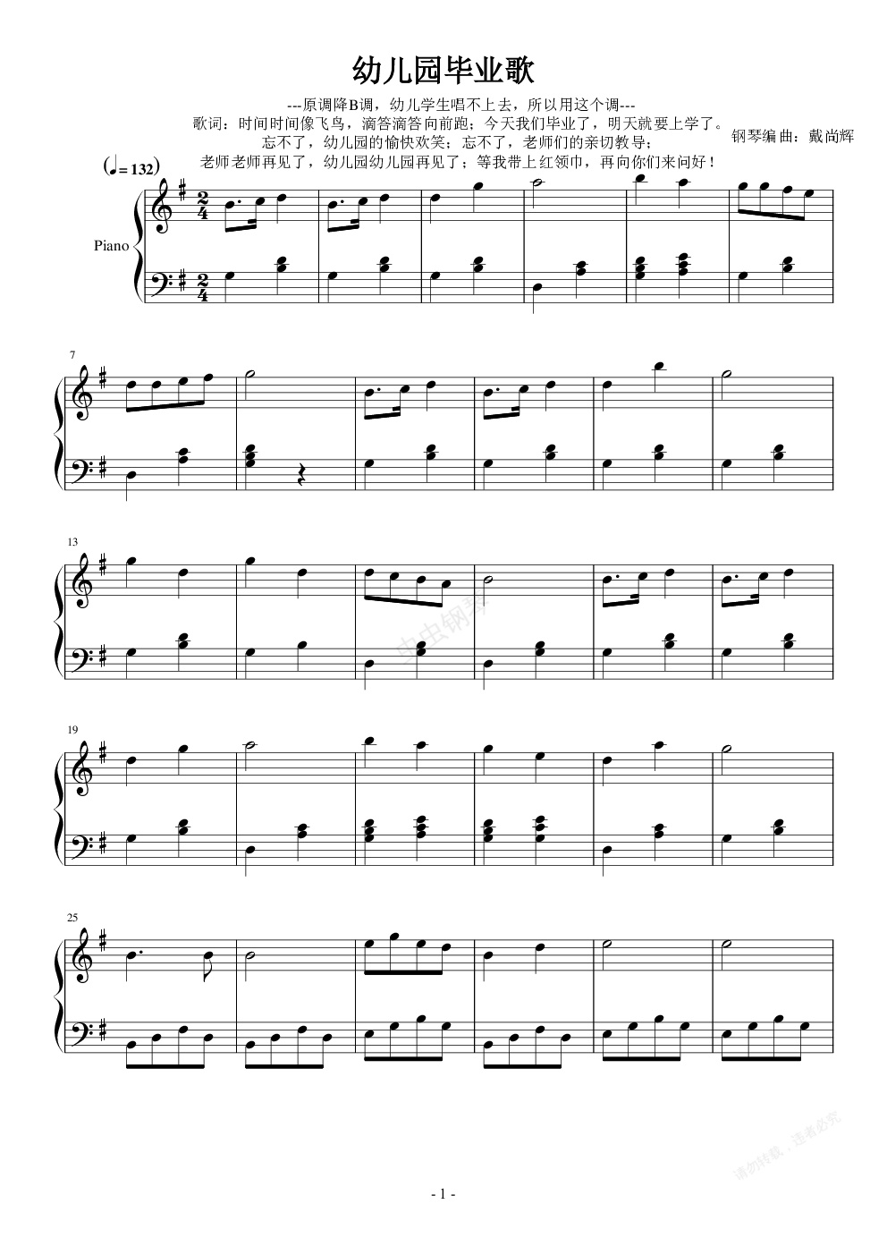 钢琴谱:幼儿园毕业歌 幼儿学生最爱弹的曲
