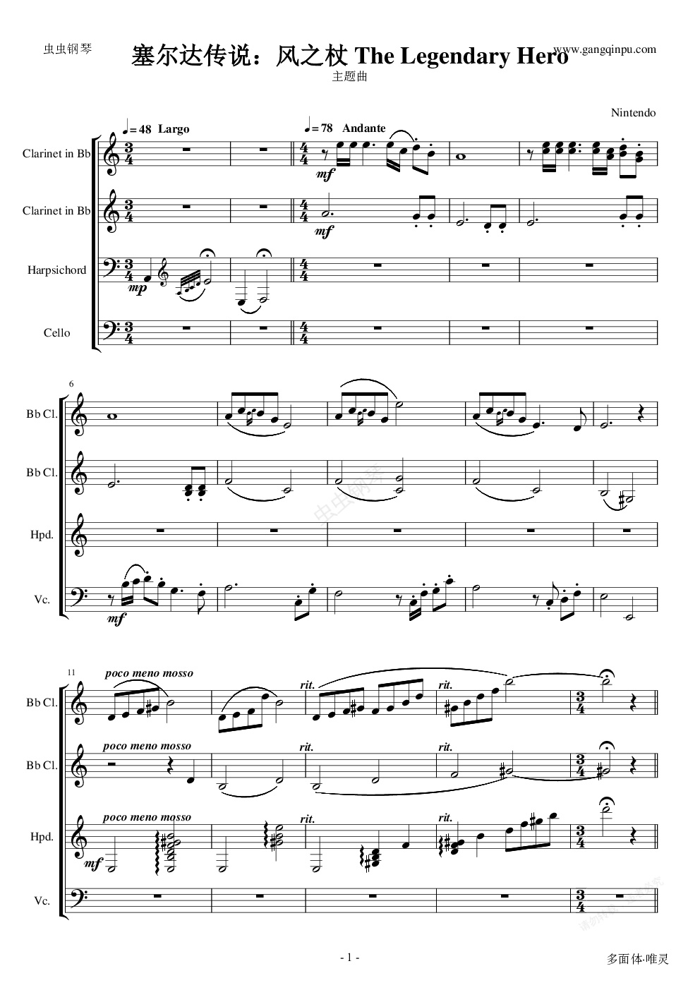 钢琴谱:塞尔达传说:风之杖 The Legendary Hero