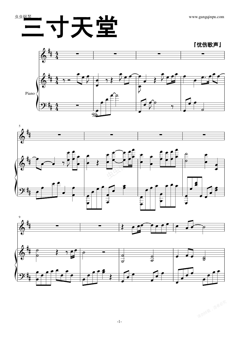 钢琴谱:《三寸天堂》超原版弹唱谱