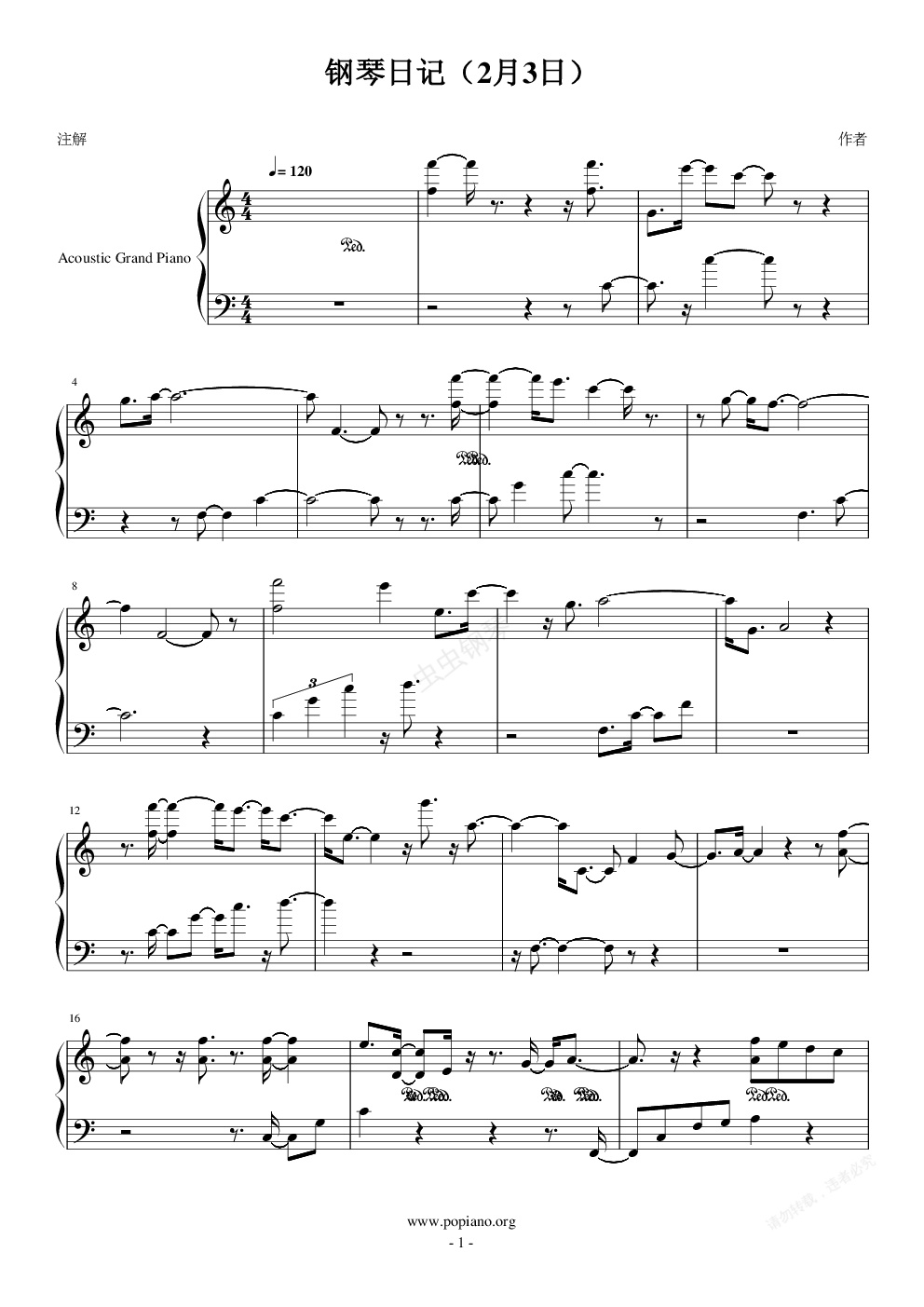 钢琴谱:钢琴日记(2月24日)