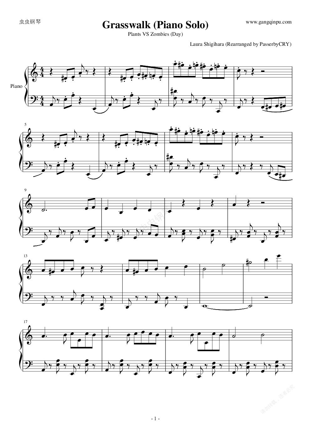 钢琴谱:植物大战僵尸白天前院钢琴版