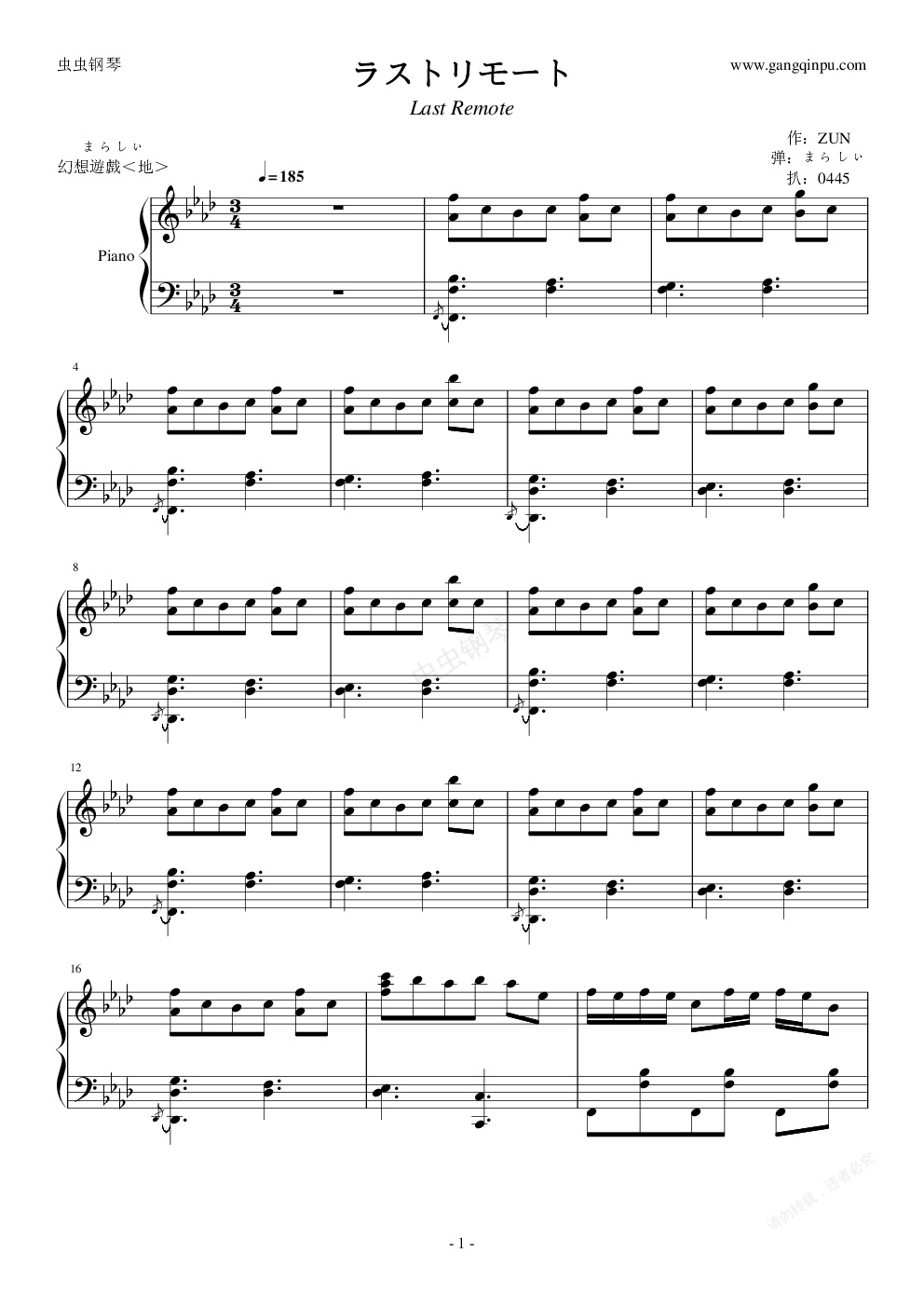 钢琴谱:【东方地灵殿】【触手猴】ラストリモート