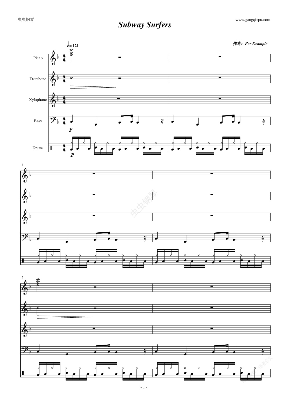 钢琴谱:Subway Surfers(地铁跑酷)背景音乐