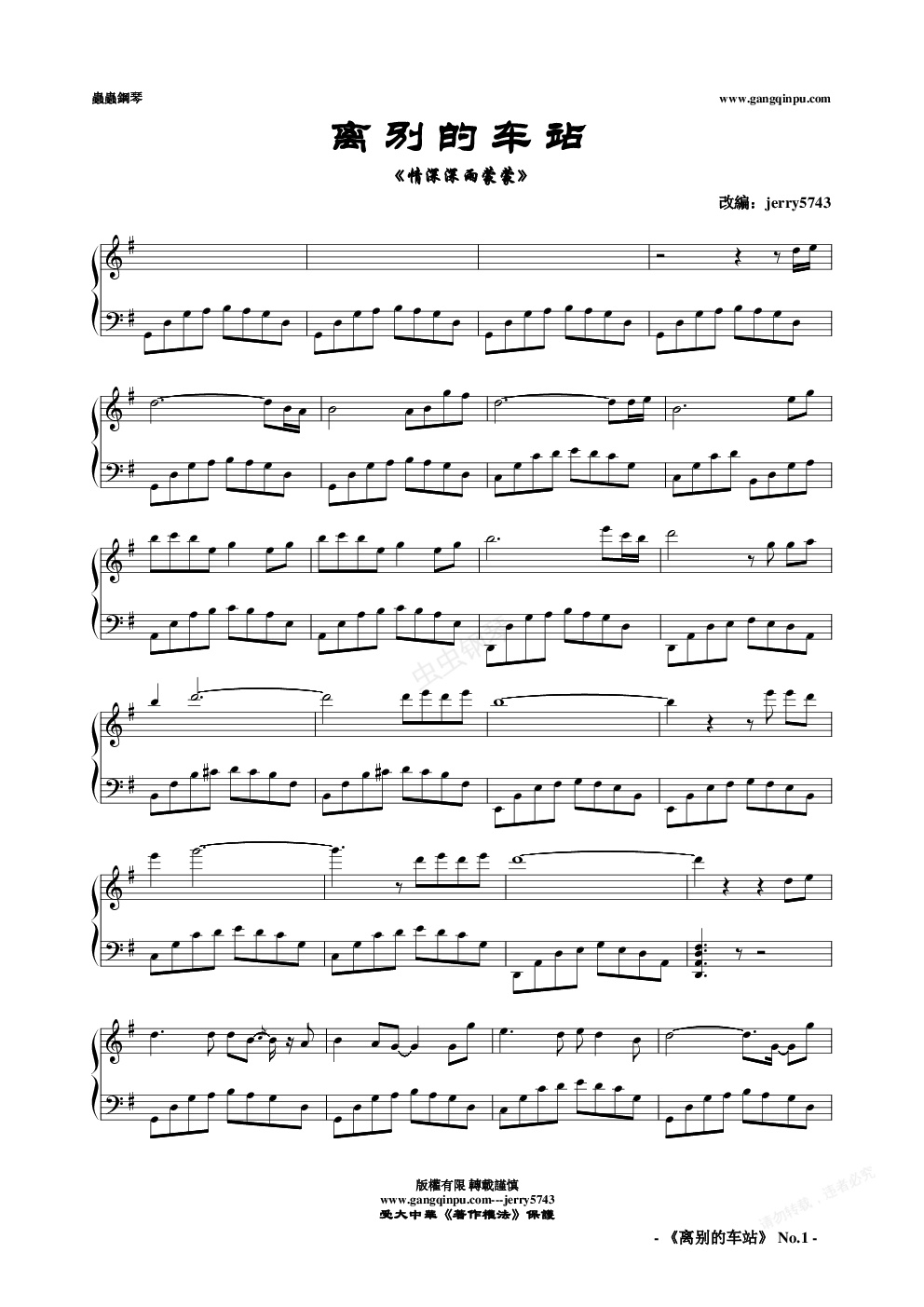 钢琴谱:離別的車站(山水眩月版)《情深深雨濛蒙》
