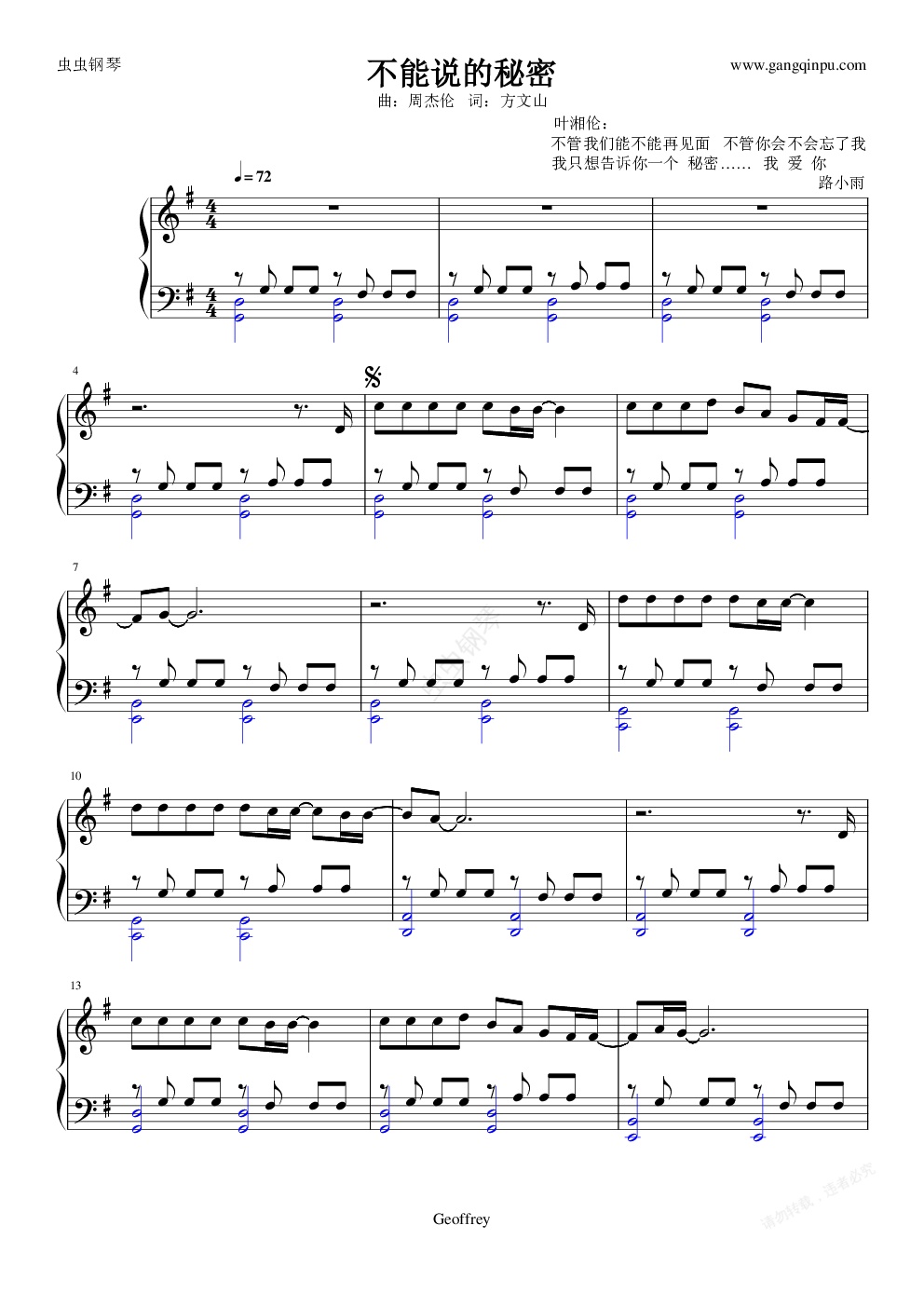 钢琴谱:《不能说的秘密》电影创作琴谱(原版)