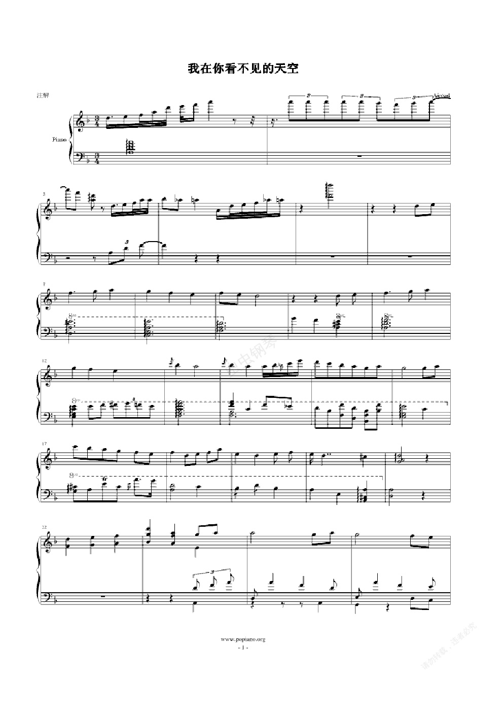钢琴谱:我在你看不见的天空