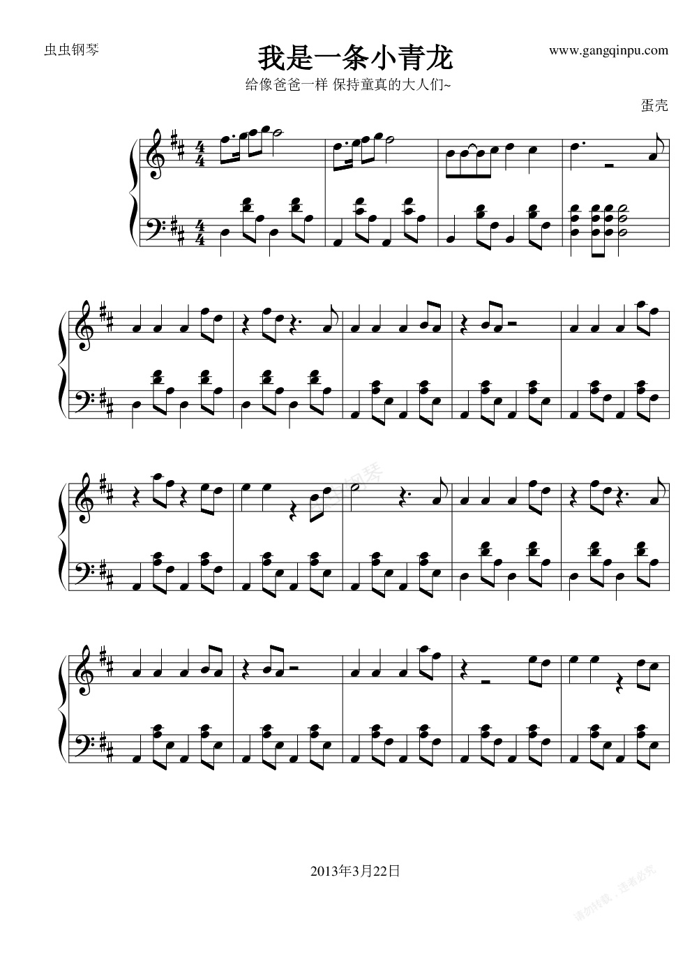 钢琴谱:我是一条小青龙