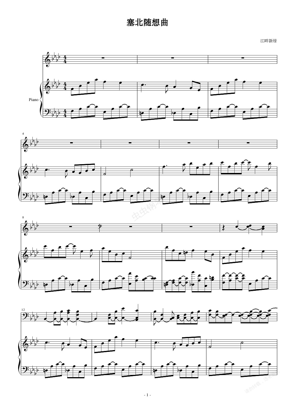 钢琴谱:塞北随想曲