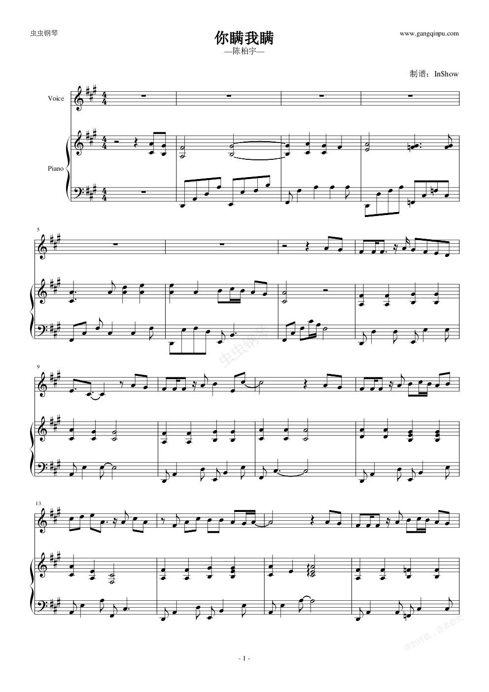 钢琴谱:你瞒我瞒 - 陈柏宇