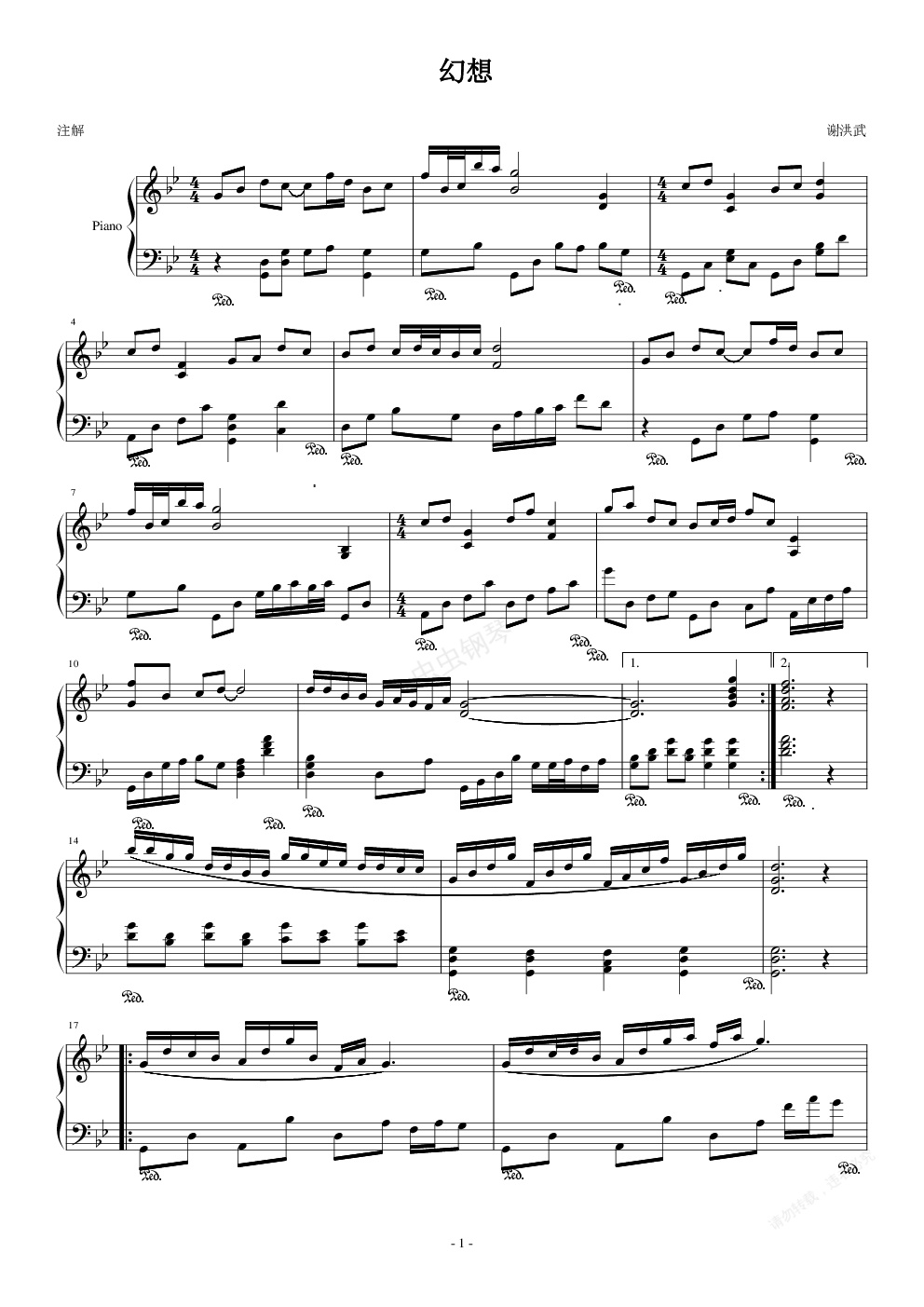 钢琴谱:幻想