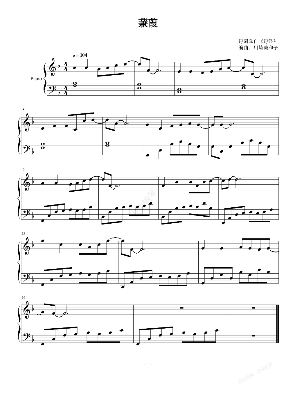 钢琴谱:《蒹葭》原创谱曲