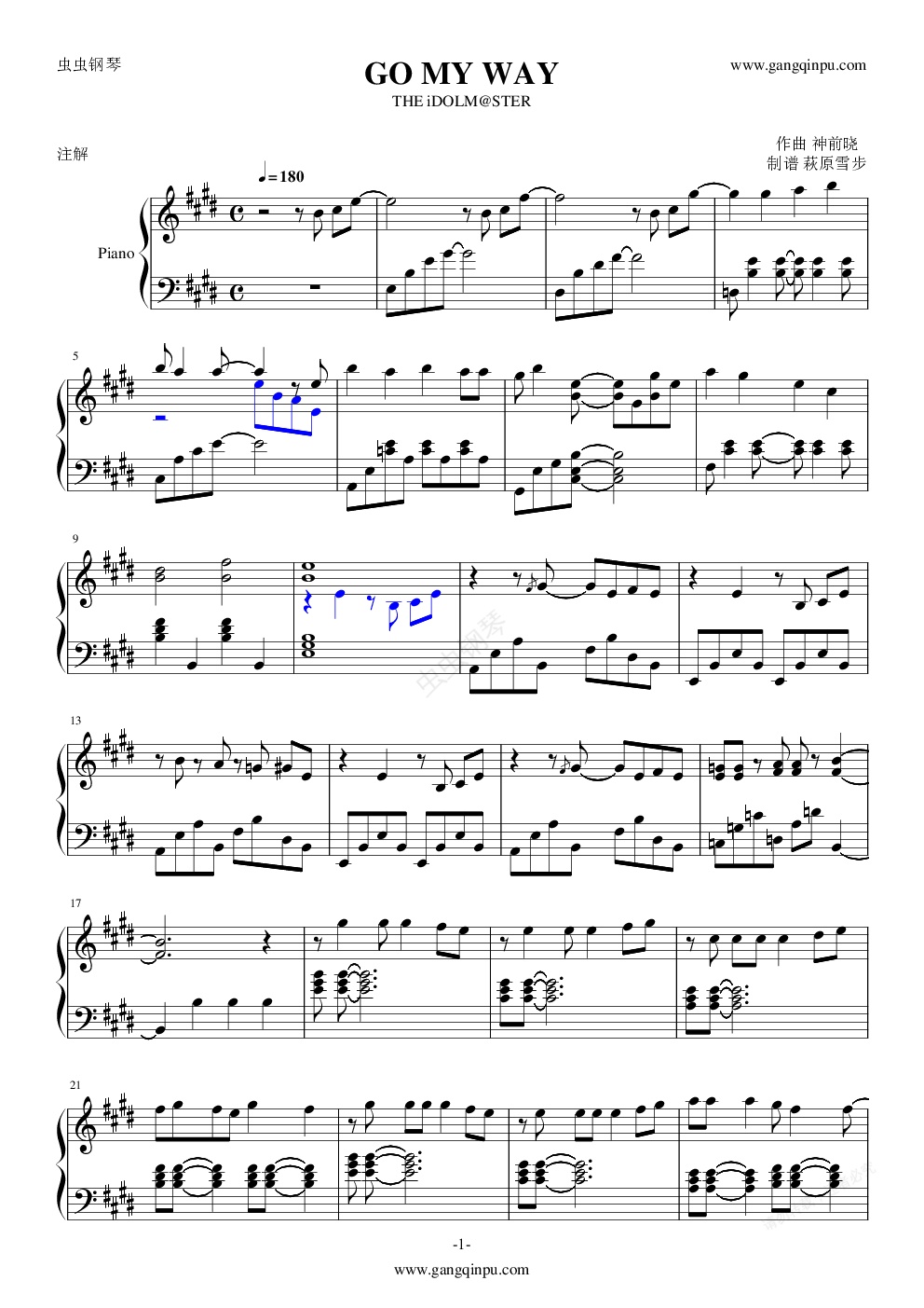 钢琴谱:GO MY WAY