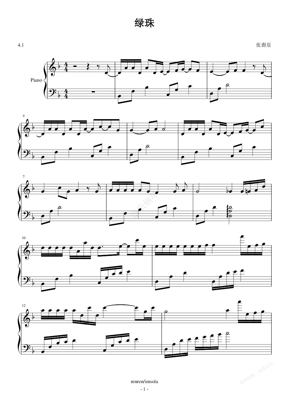 钢琴谱:绿珠