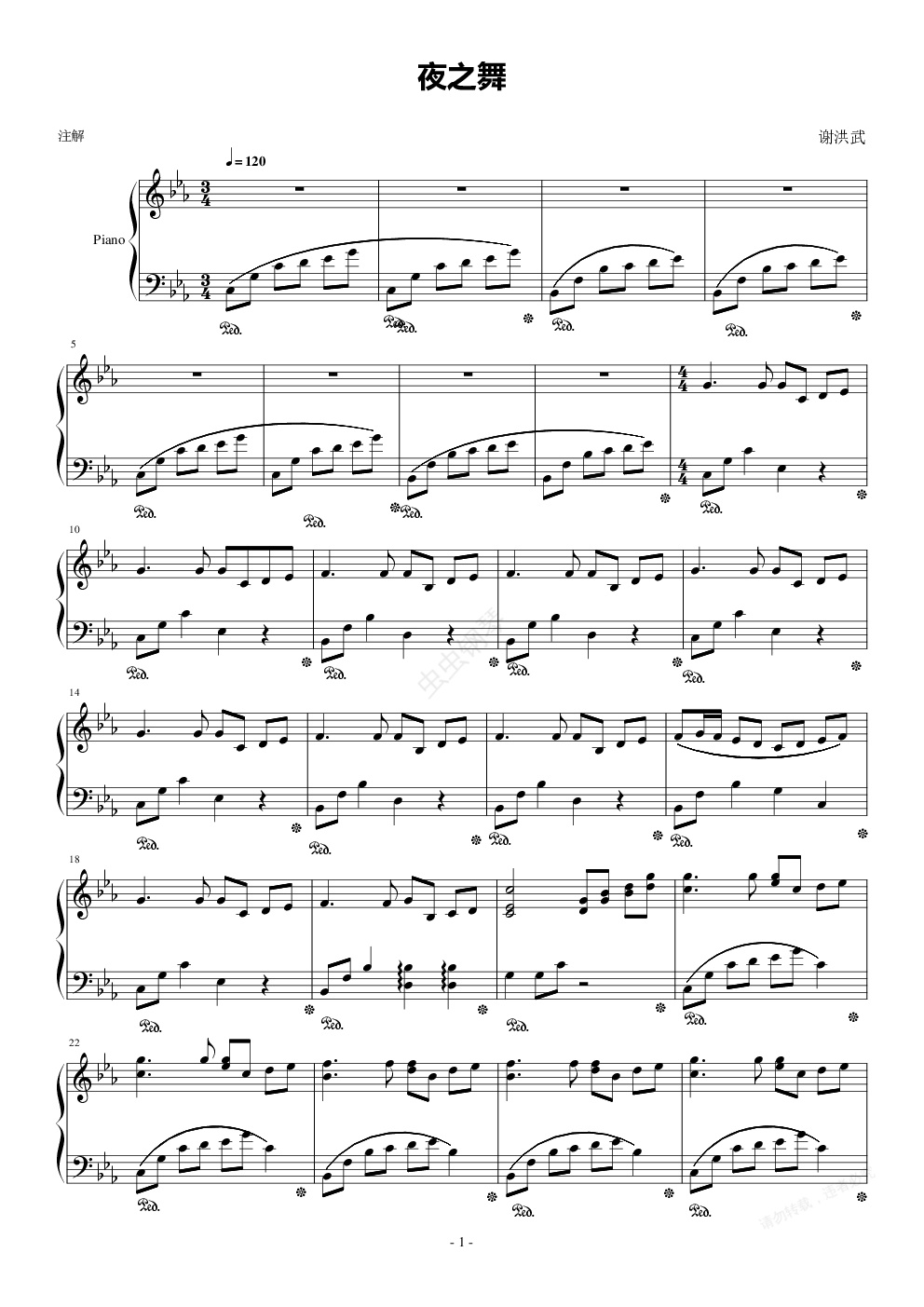 钢琴谱:夜的旋律