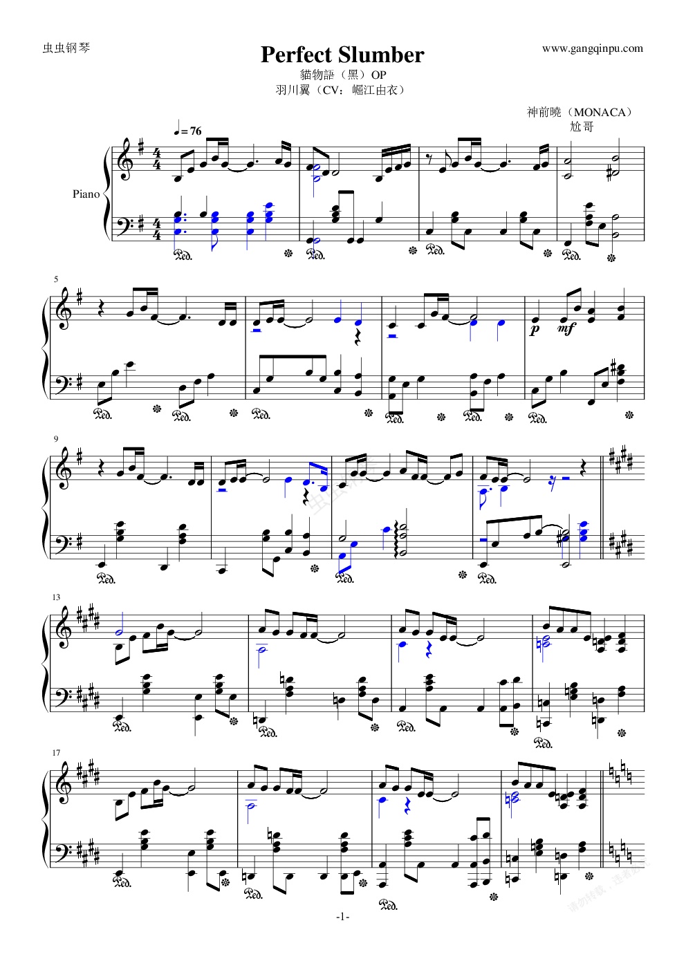 钢琴谱:Perfect Slumber /貓物語(黑)OP