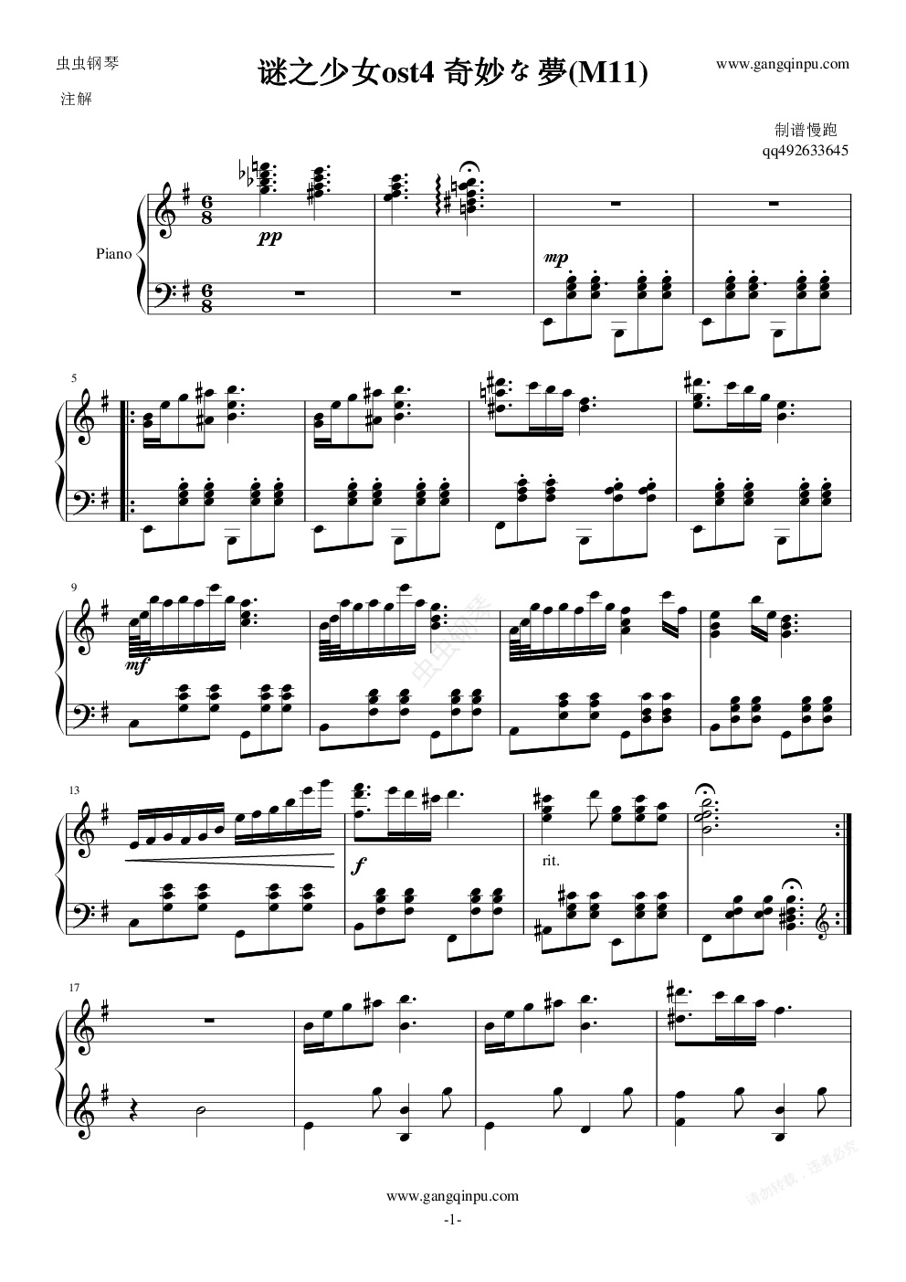 钢琴谱:谜之少女Xost4 奇妙な夢