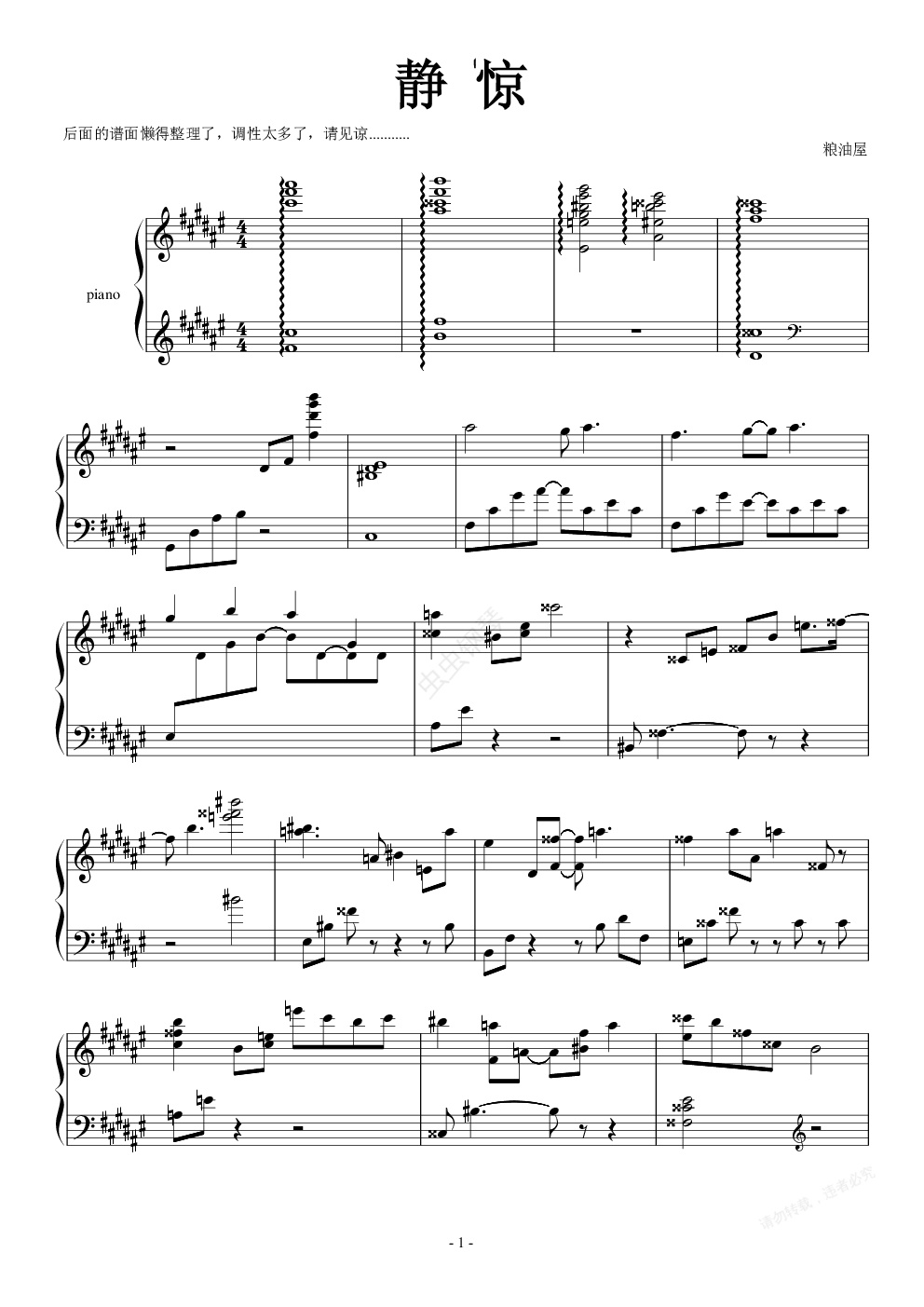 钢琴谱:静•惊