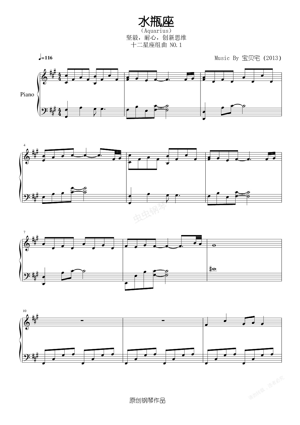 十二星座钢琴组曲之一。近来听到青涩宝贝的星座组曲,突然心血来潮,也想写一部自己的组曲。我对各星座的感受来源于周边的朋友,并不能代表全部。本人对星座了解并不深,有说错写错的也请见谅。 P.S:音效已重新调整。