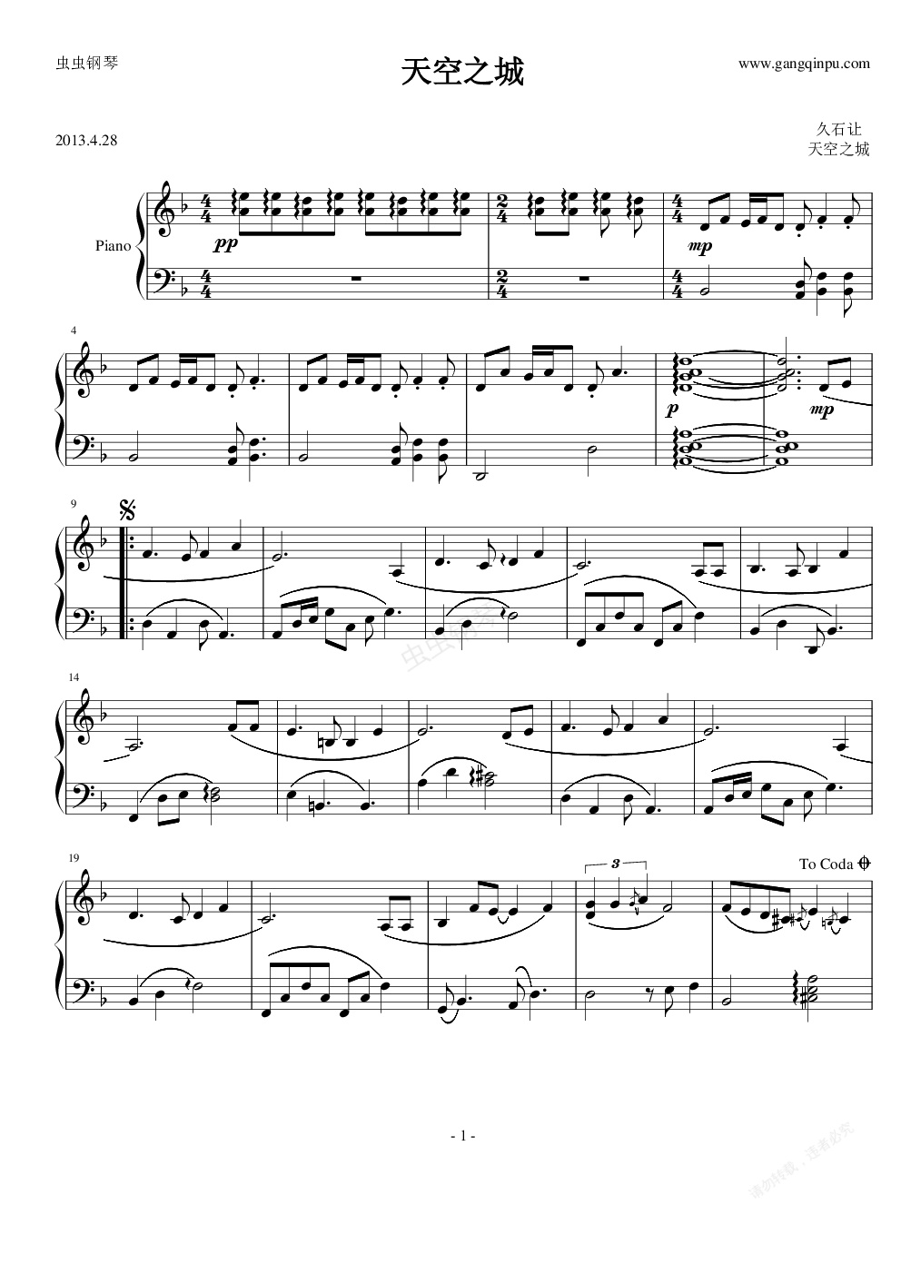 钢琴谱:天空之城(适合钢琴、吉他)