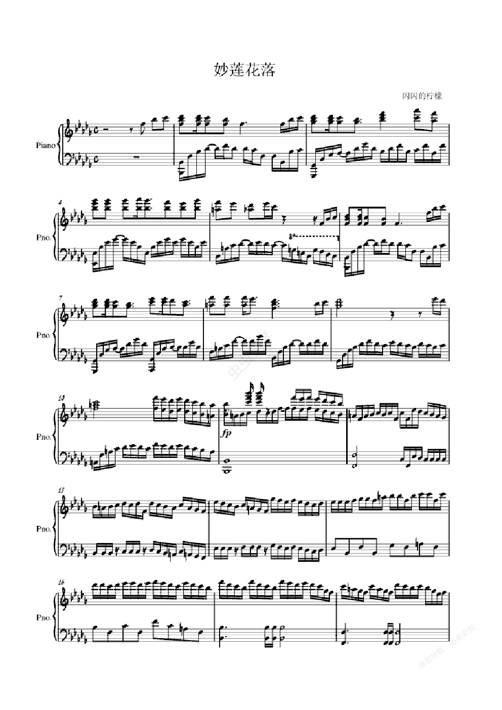 钢琴谱:妙莲花落~