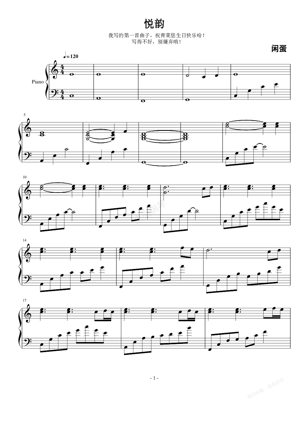 钢琴谱:悦韵