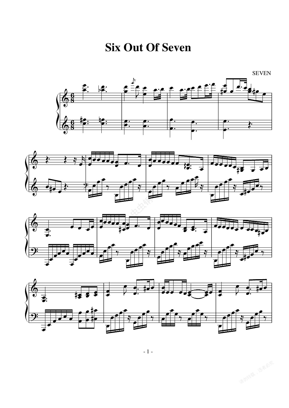 钢琴谱:SIX OUT OF SEVEN