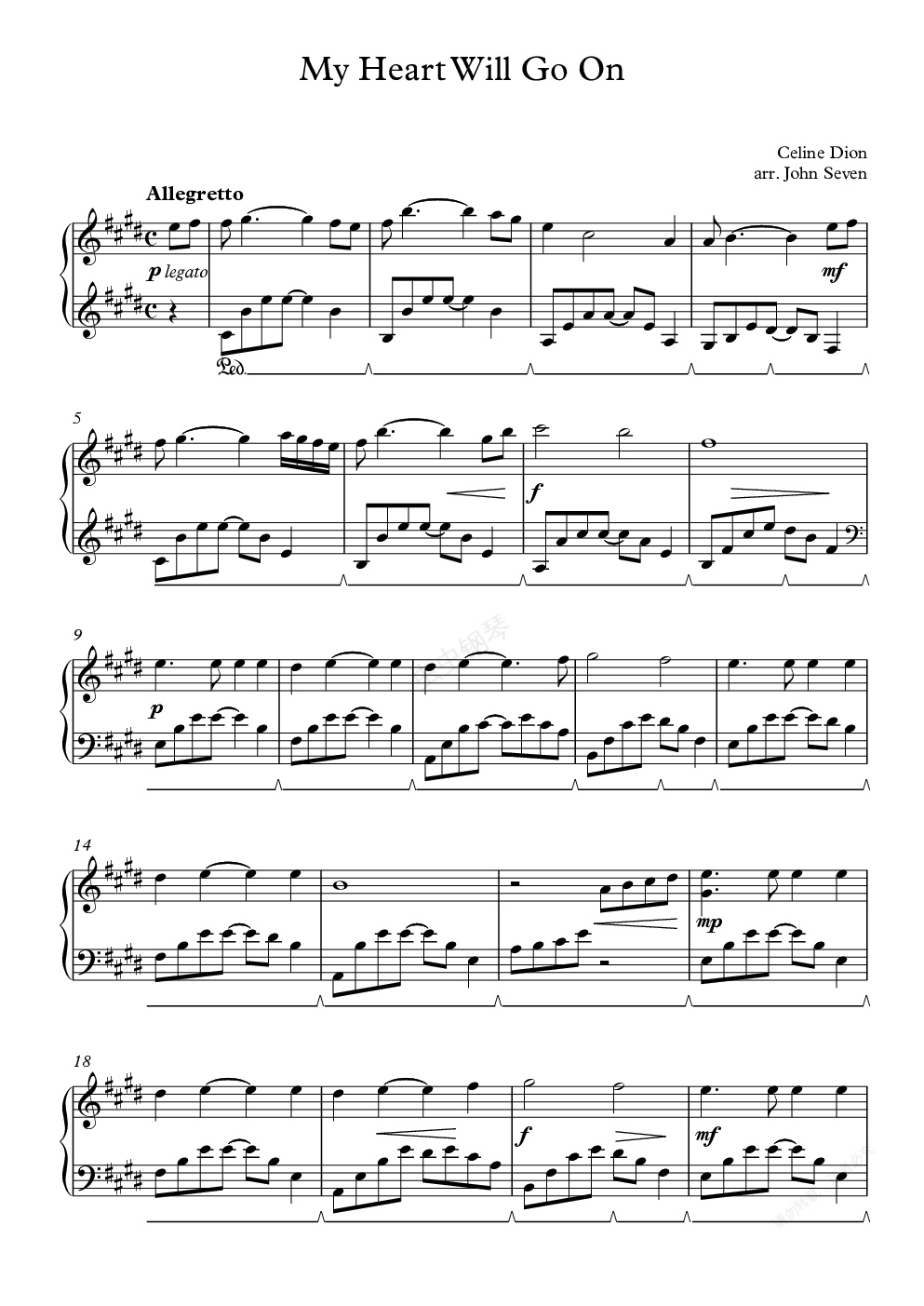 钢琴谱:My Heart Will Go On(我心永恒)简易版