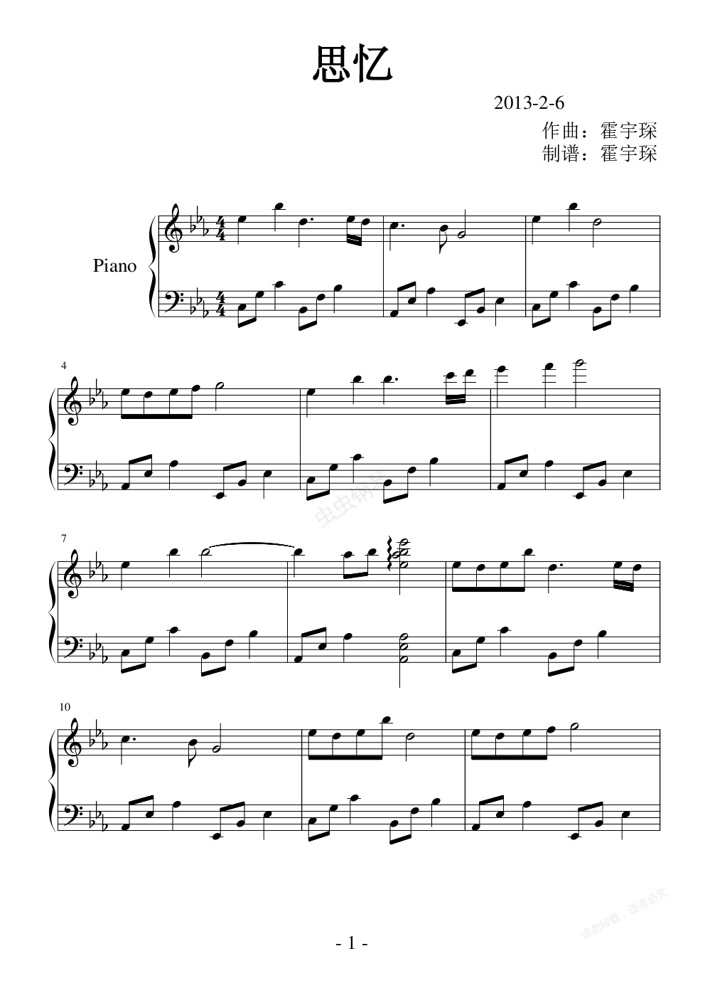 钢琴谱:思忆那逝去的年华