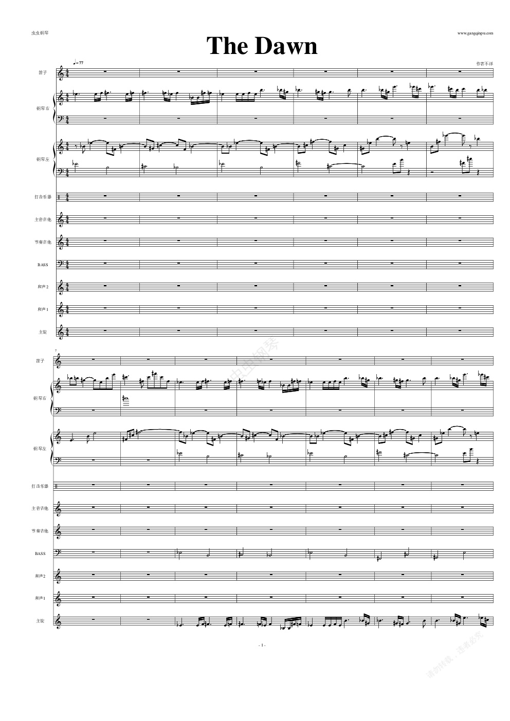 钢琴谱:The Dawn