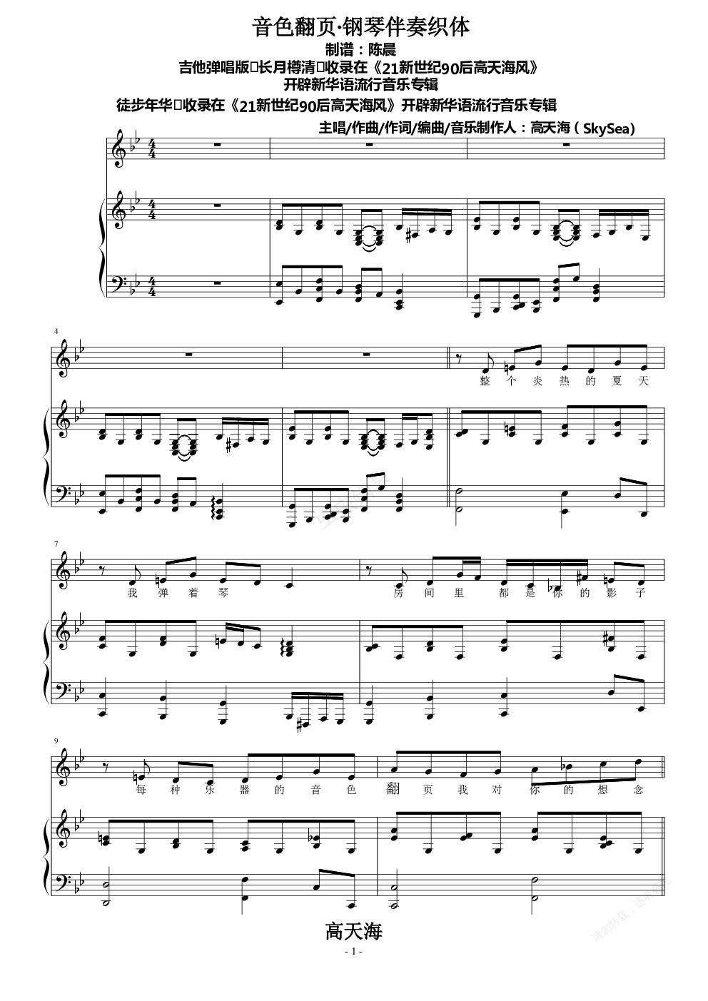 钢琴谱:长月樽清(吉他、钢琴织体)