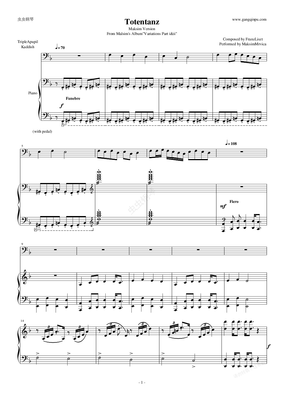 李斯特1849年完成了一首钢琴与乐队的单乐章作品《死之舞》(),在乐曲中李斯特运用了著名的《震怒之日》来点睛,收到相当好的效果。1838年李斯特曾在意大利的比萨见过一幅教堂的壁画,上边是一个背后长出蝙蝠翅膀的丑老婆子,代表着死神,正挥起大刀,向那些毫无防备,正忧哉全然不知死神临头的人们砍去。作曲家由此得来灵感,又将这恐怖荒诞的动机同中世纪的一首咏唱“末日审判”的教会歌曲《震怒之日》(即《安魂曲》格式中的第三乐章《末日经》的由来)联系起来,作成这首极富幻想色彩的杰作。乐曲从钢琴弹出的强有力的“震怒”开始,此后的五组变奏,都是想象力无比丰富,音响上色彩绚丽而效果奇佳的。这支乐曲一开始就是古代罗马教皇格利高利“最后审判日”的圣歌曲调,沉重有力,象征着死神降临的脚步。此后,作曲家用这个曲调变奏出 26个迥异的音乐形象,有的轻快、活泼;有的庄严、稳重;有的辉煌、灿烂;有的幽默、有趣;有的优雅、小巧;有的粗鲁、笨拙……以此表达各种不同的人,他们无一例外都在走向死亡。作者的主题十分明确:在死亡面前人人平等;不论贫富;不论美丑;不论雅俗、不论信仰、不论等级和社会地位,人人或迟或早总有一死。