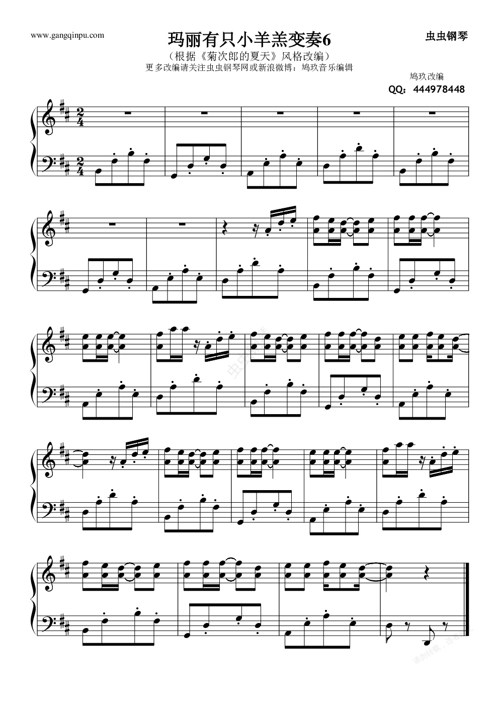钢琴谱:玛丽有只小羊羔变奏6(根据菊次郎的夏天风格改编)