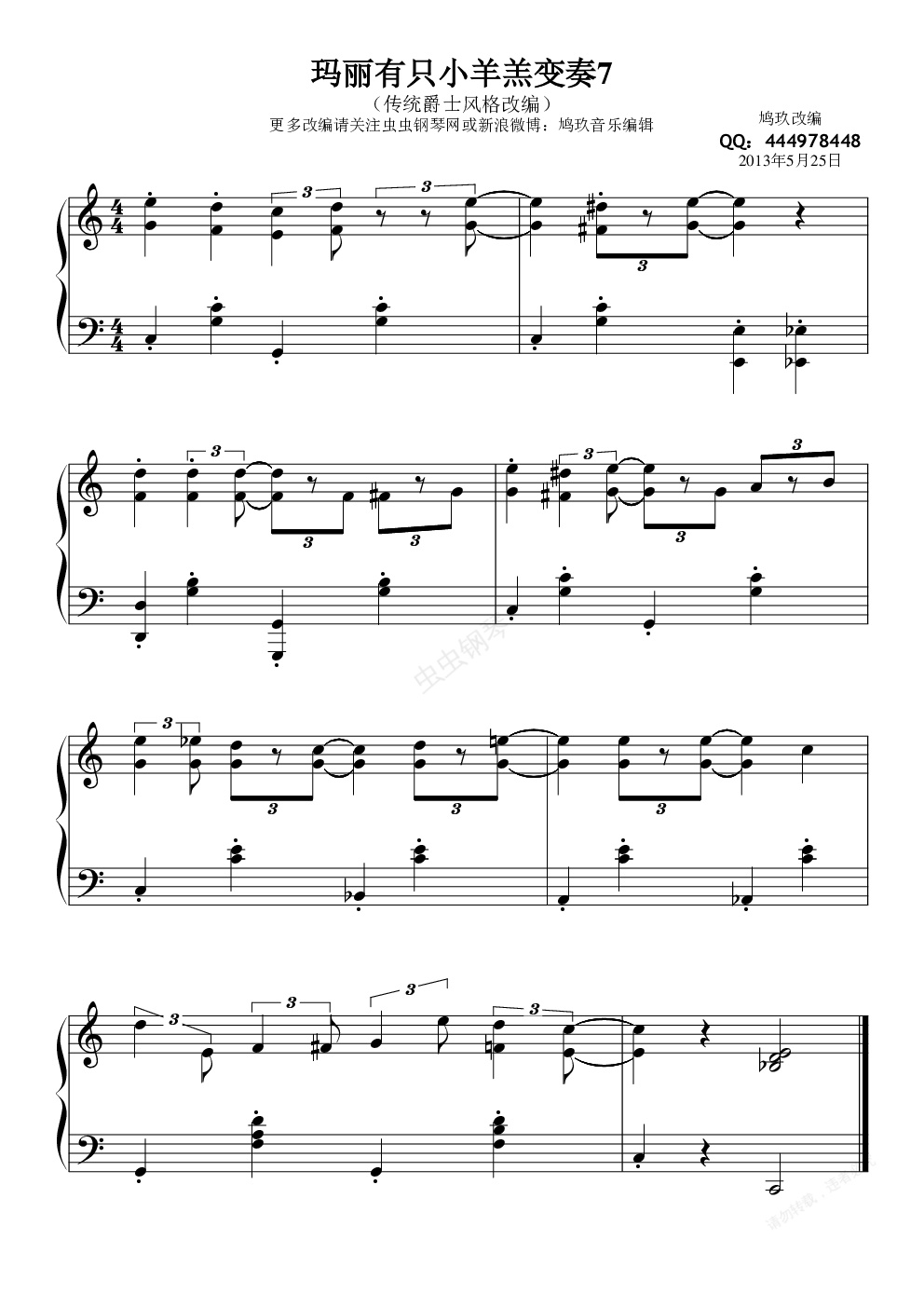 钢琴谱:玛丽有只小羊羔变奏7(传统爵士风格)
