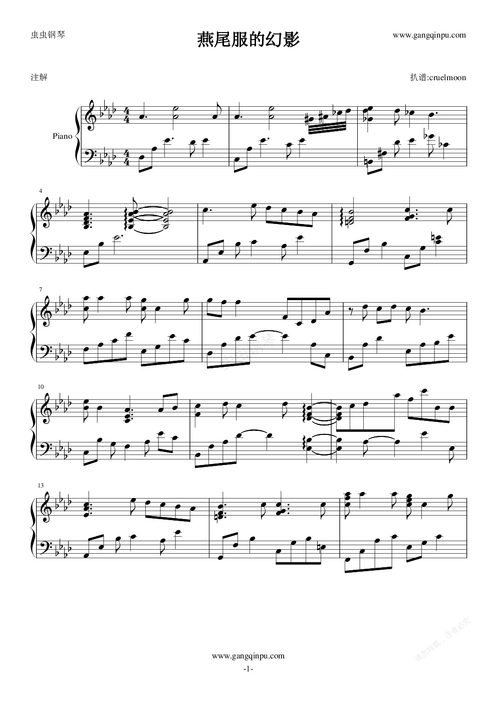 钢琴谱:美少女战士S片尾曲---燕尾服的幻影
