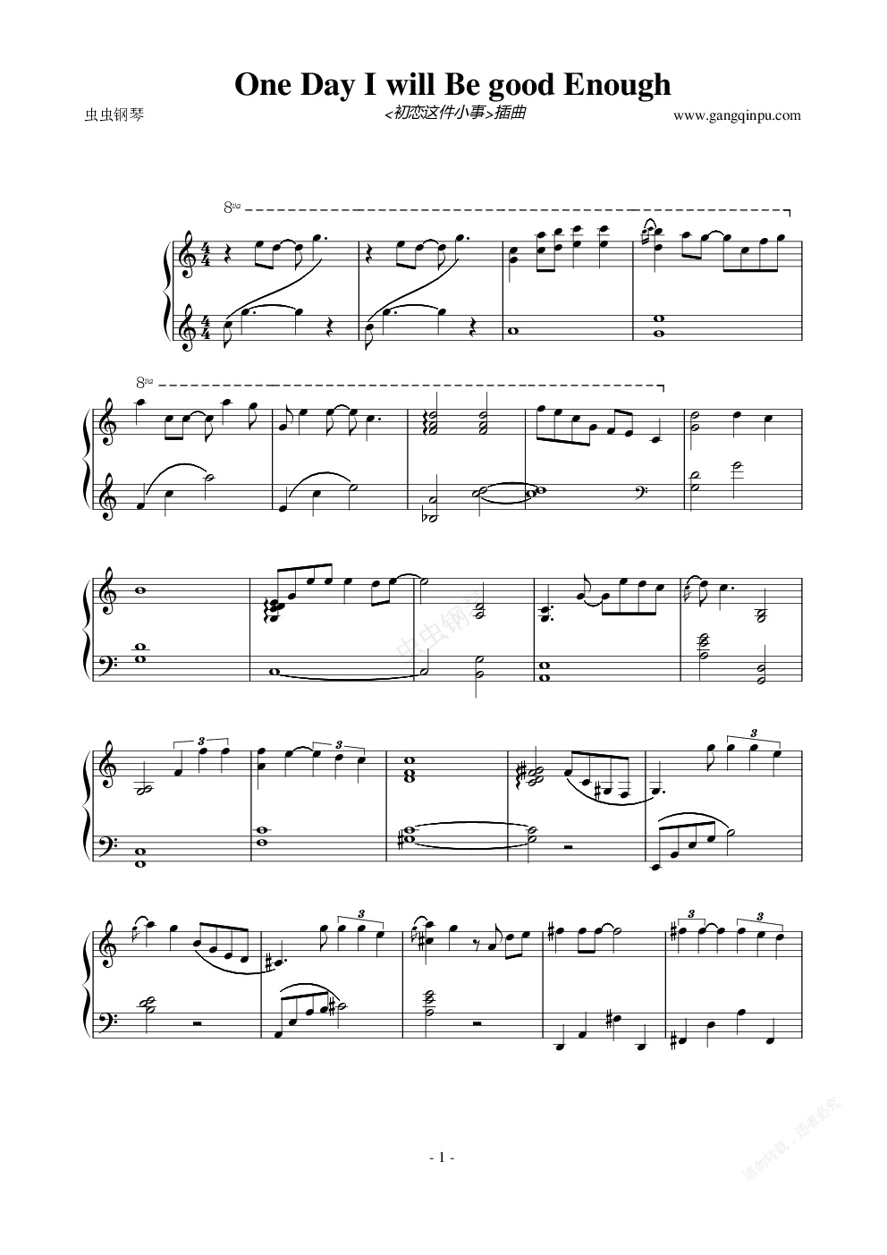 钢琴谱:初恋这件小事插曲 One Day I will Be good Enough