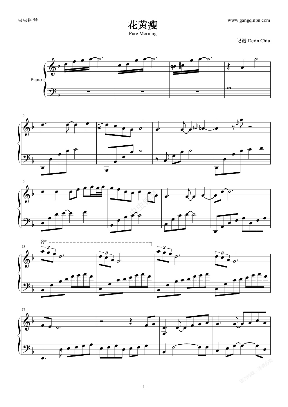 钢琴谱:花黄瘦
