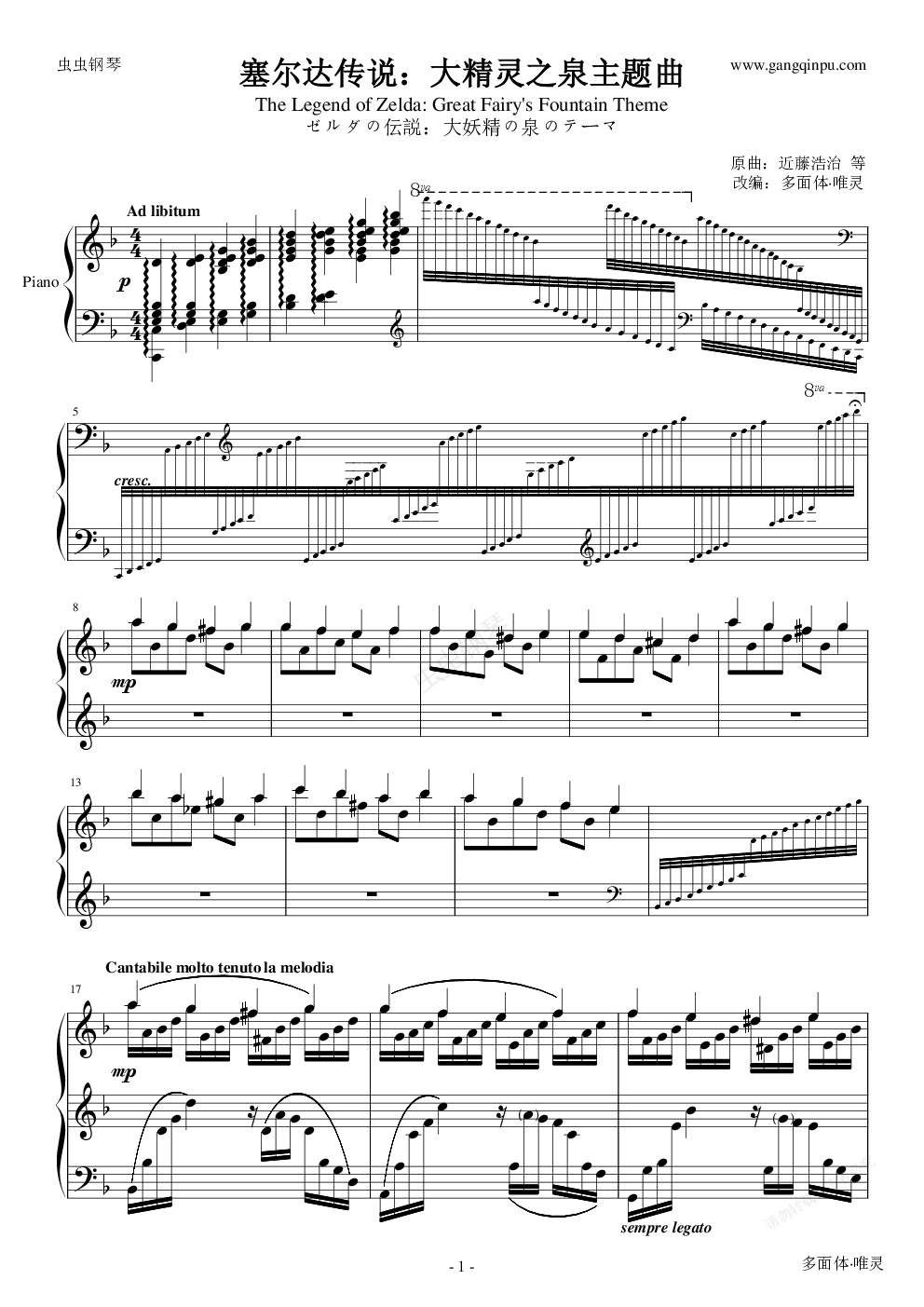 钢琴谱:塞尔达传说:大精灵之泉主题曲(钢琴版)
