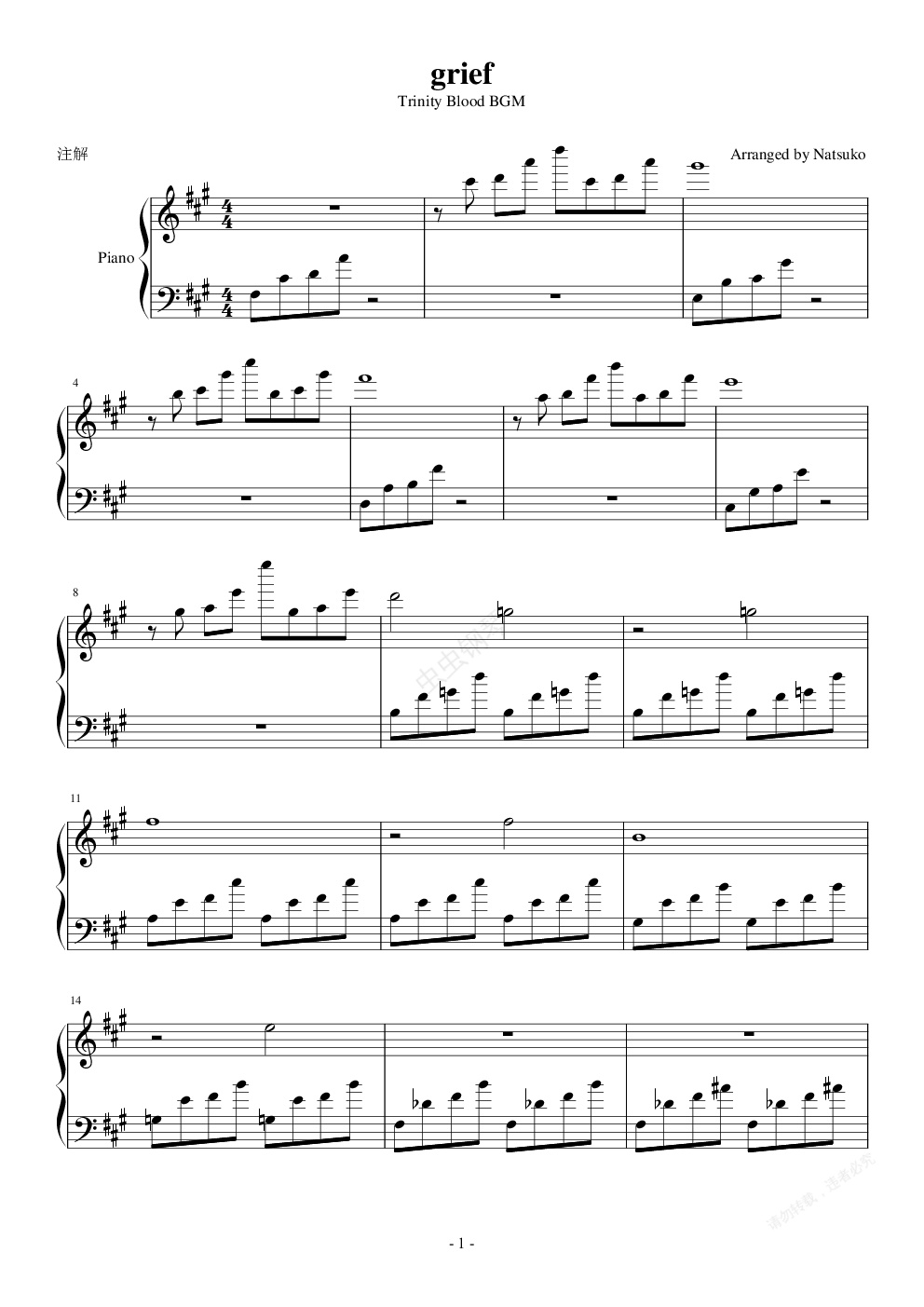 钢琴谱:圣魔之血BGM-插曲-Grief-(Trinity Blood)