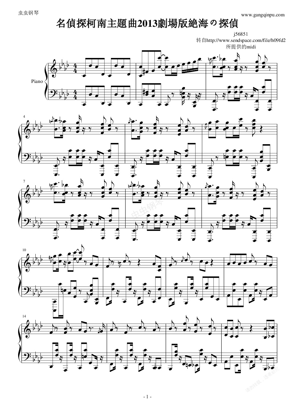 钢琴谱:名偵探柯南主題曲2013劇場版 絶海の探偵 完整版鋼琴独奏
