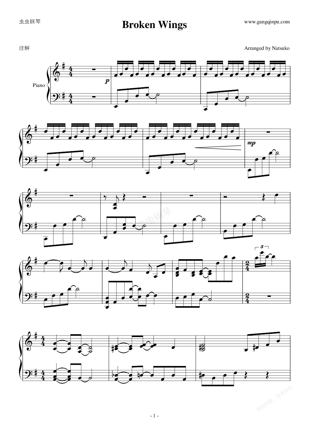 钢琴谱:圣魔之血ED伴奏-Broken Wings-(Trinity Blood)