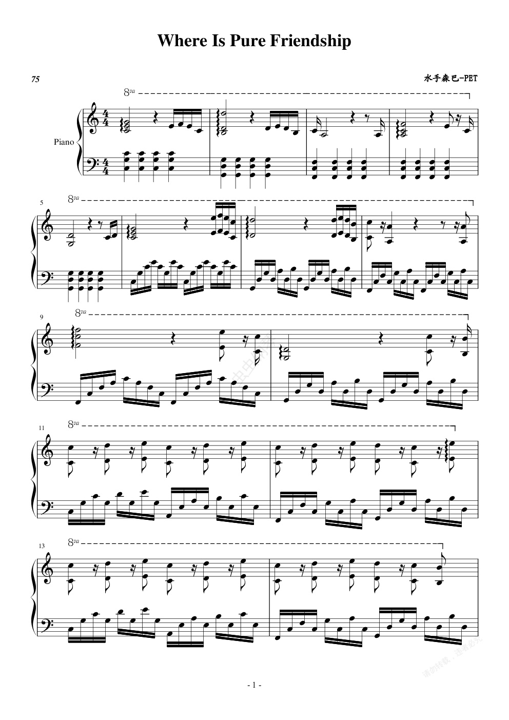 钢琴谱:where is pure friendship