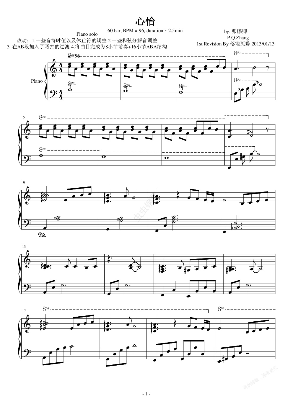 一年前的暑假写的。 意如其名,就不多解释了~ 钢琴张