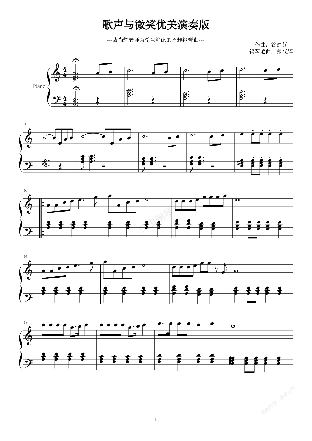 钢琴谱:歌声与微笑少儿演奏版