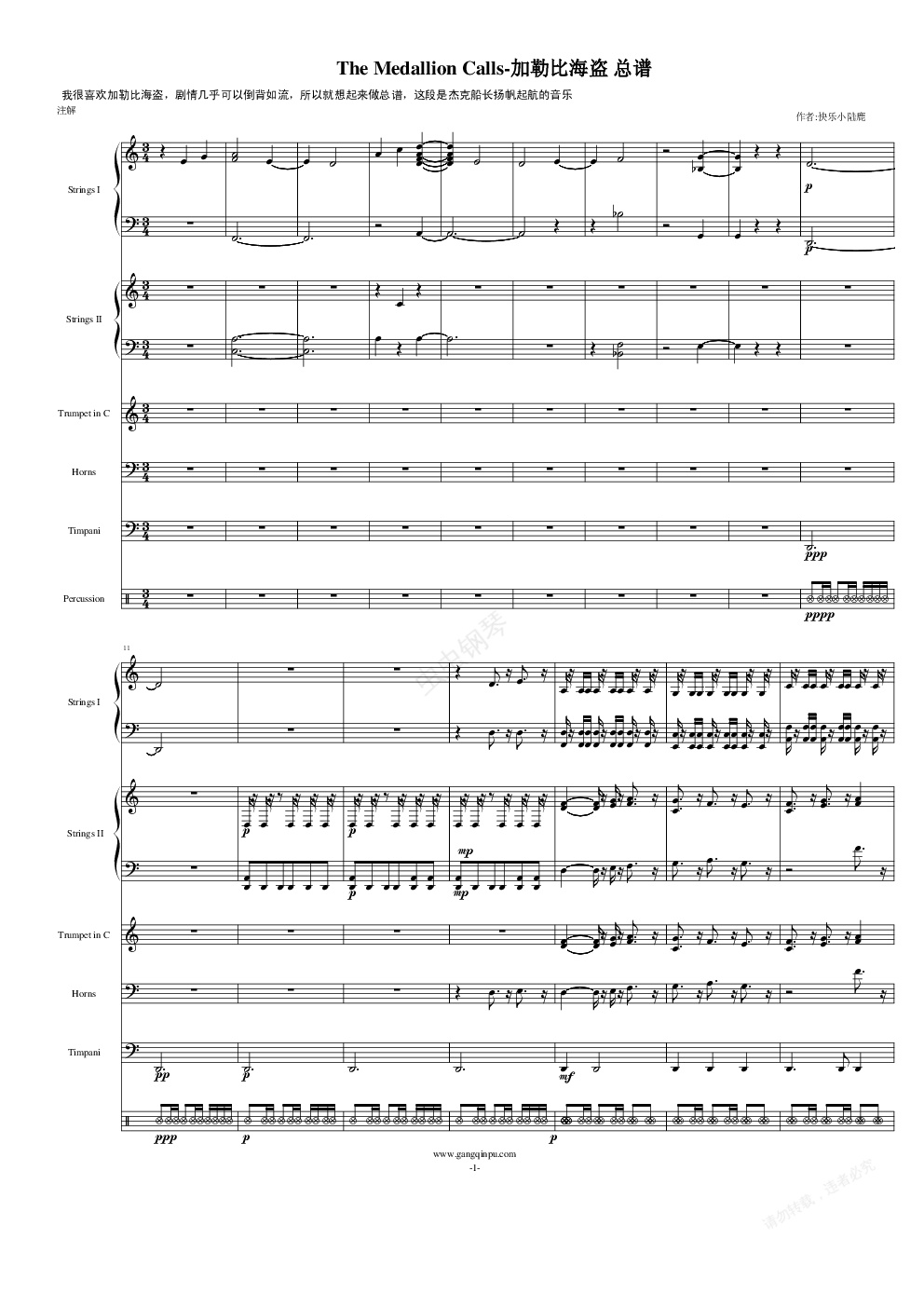 钢琴谱:The Medallion Calls-加勒比海盗 总谱
