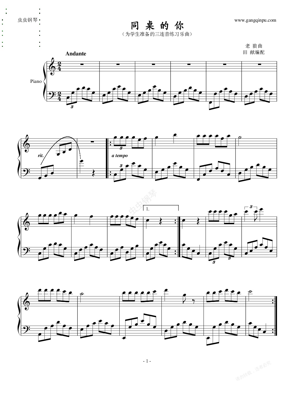 钢琴谱:同桌的你(简单)