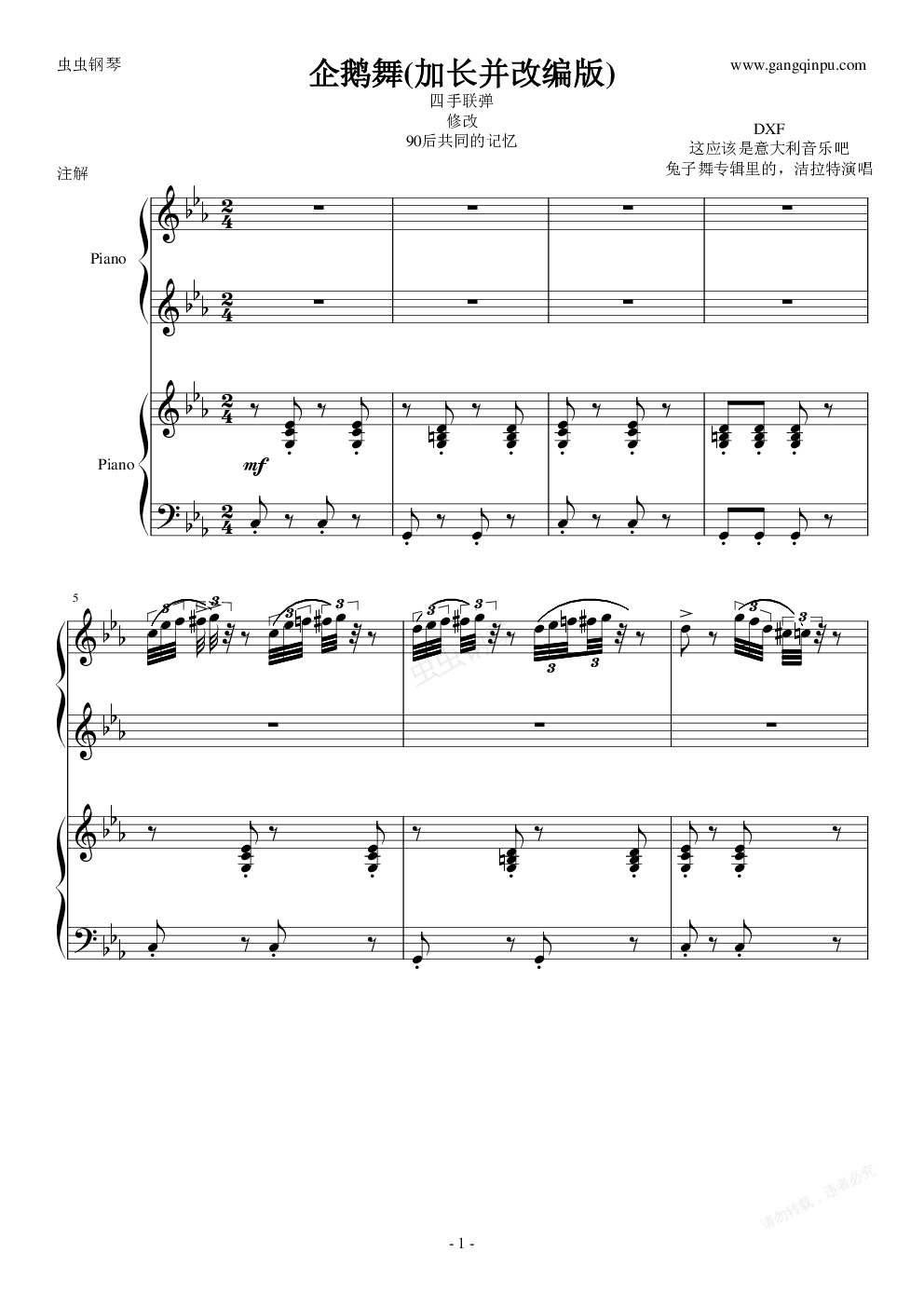 钢琴谱:兔子舞(修改并加长版)