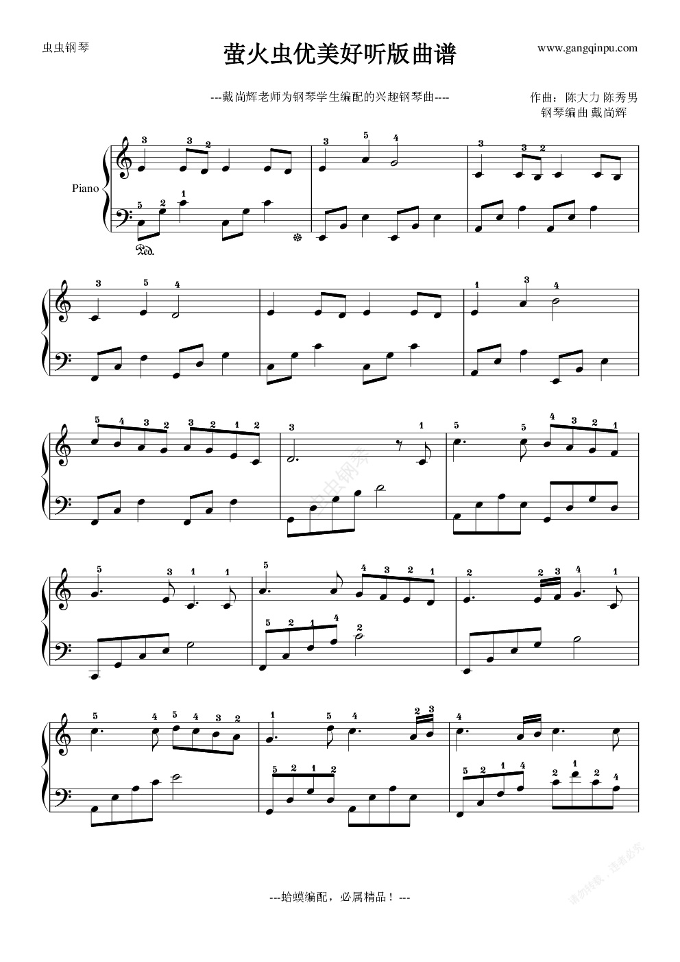 钢琴谱:萤火虫优美好听版(蛤蟆制作,必属精品)