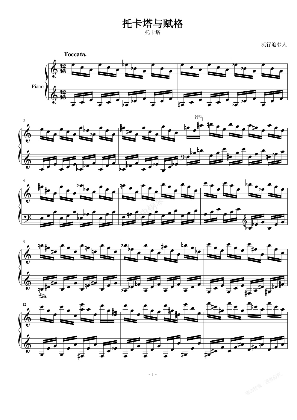 钢琴谱:托卡塔与赋格 托卡塔