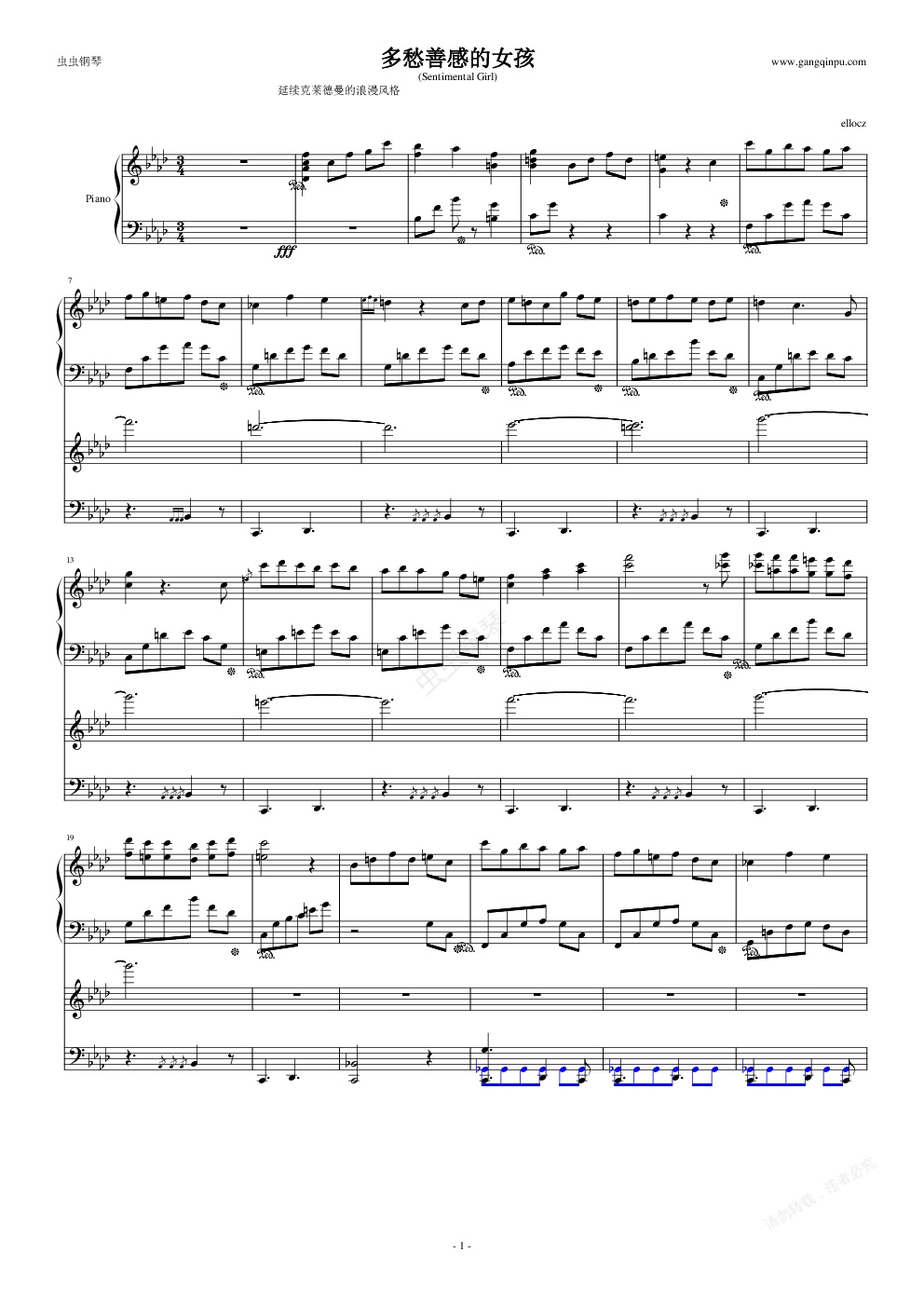 钢琴谱:多愁善感的女孩